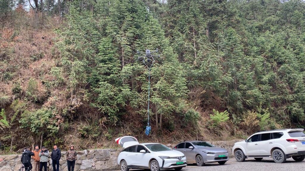 Three UAVs carrying air-to-ground communication terminals took off to operate, serving as both reconnaissance and aerial communication relay nodes, forming an integrated air-to-ground network. The UAVs were controlled via a beyond-visual-range flight control link, overcoming the limitations of mountainous environments and enabling beyond-visual-range disaster reconnaissance and precise delivery.2)Real-time video sharing and comprehensive situational awareness Reconnaissance footage from drones is transmitted back to the on-site command center in real time and simultaneously shared with the smart terminals of all ground search and rescue personnel. This allows search and rescue team members and commanders to monitor the dynamics of the target area in real time, improving team collaboration efficiency.