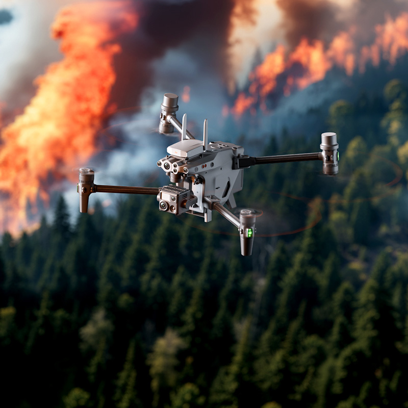 Compact and portable | 45-minute battery life | 03 image transmission industry version | 4/3 CMOS wide-angle camera | Up to 56x zoom camera | 640×512 thermal imaging camera